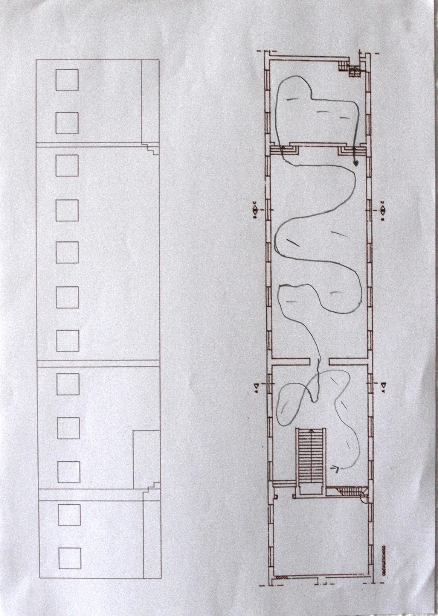 members of the Architecture Group performed walking, running, and jumping through the exhibition space around the artworks in any way they wished to move. they were thoughtfully and carefully recorded by myself to create the performative scores. the idea of a performative score is that the documentation itself is a placeholder to gesture towards inclusivity. the ‘performative’ renders it almost an invisible act, supposedly without meaning, and here, therefore, evokes a reconceptualized version of one’s own liberty. also, we recorded the movements, but the reality is that each performance will always have different movements by the performers every time they walk through the space. moving through the exhibition is not prescribed, nor does it have to be by invitation as the imagined space is open to all. scores are often loosely defined because the nature of performance is that it occurs in each moment or context of difference from the past or future.